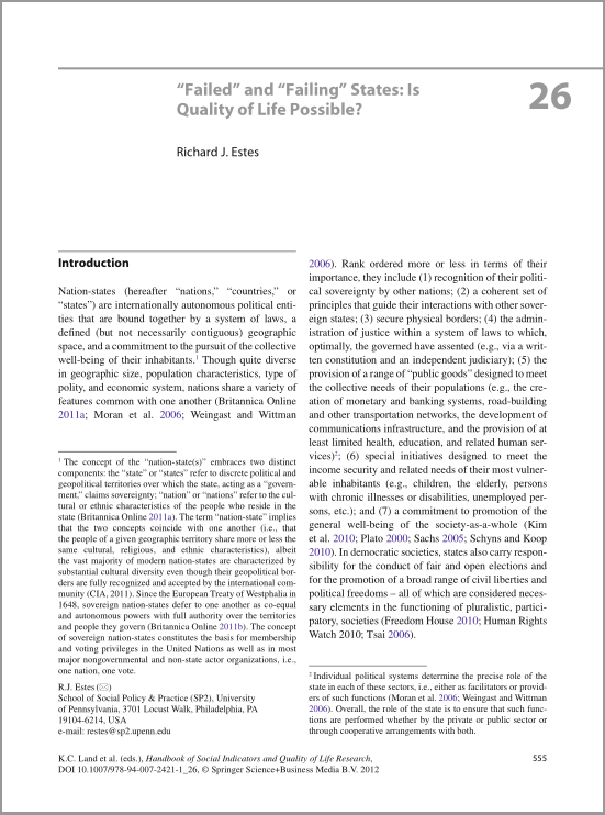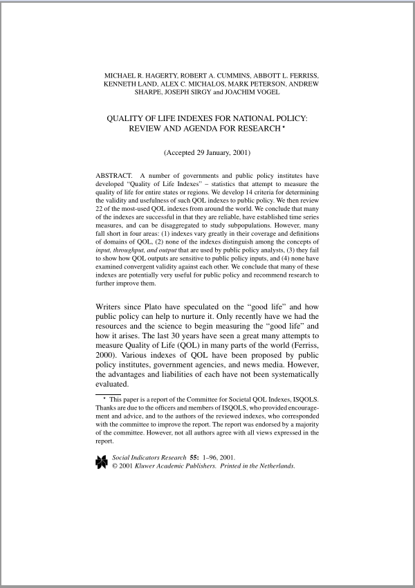 Quality of Life Indexes for National Policy: Review and Agenda for Research