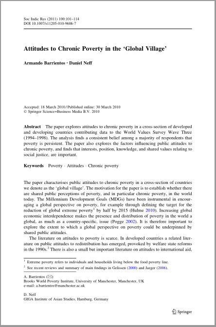 Attitudes to Chronic Poverty in the ‘Global Village’