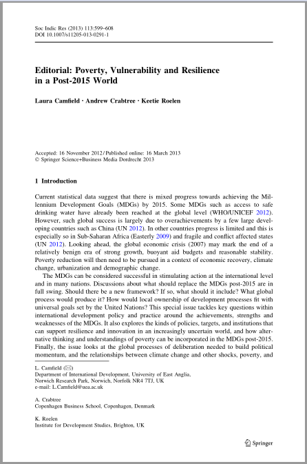 Poverty, Vulnerability and Resilience in a Post-2015 World